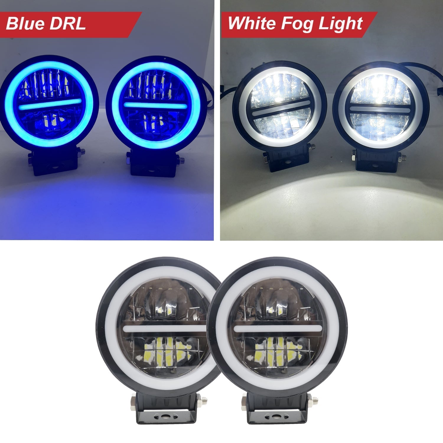 LIU HJG White Led Fog Light With Blue DRL Universal For All Bikes, Cars and Trucks (Pack Of 2)